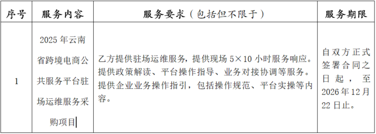 2025年云南省跨境电商公共服务平台驻场运维服务采购项目
